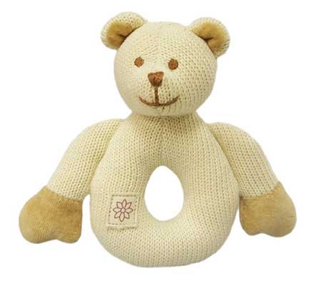Organic Cotton Knitted Bear Teether/Rattle - Safe, Non-toxic Toy