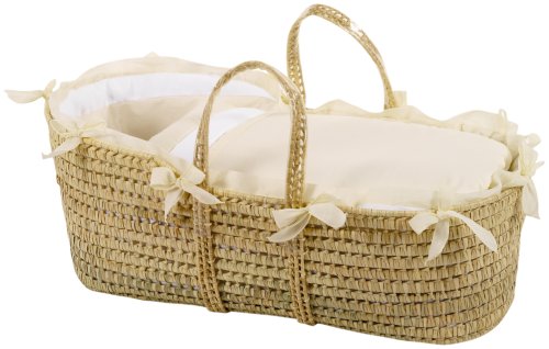 Our handmade carry basket gives new born babies a cosseting and comfortable place to nap. Beautifully detailed design mimics the Cortina 4-piece set. Luxuriously made with fabric that is securely tied around the top of the hand-made basket, the comforter is adorned with delicate bows. Coated handles make moving basket from room to room comfortable for mom and dad alike.