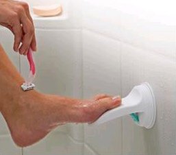Get a leg up on bathroom safety with this suction cup shower foot rest. The Safe-er-Grip steadies your balance when shaving in the shower, and is angled for comfort, while the suction cup design makes it easy to install, detach, remove and relocate.