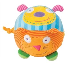 Roll around and hear the sounds from 'Round The Farm! Four farm animals in one! Press the right ear of each animal and learn their sound. Bark! Meow! Oink! Ribbit! Bell chime inside! Learn motor skills through catching, rolling and grabbing.
