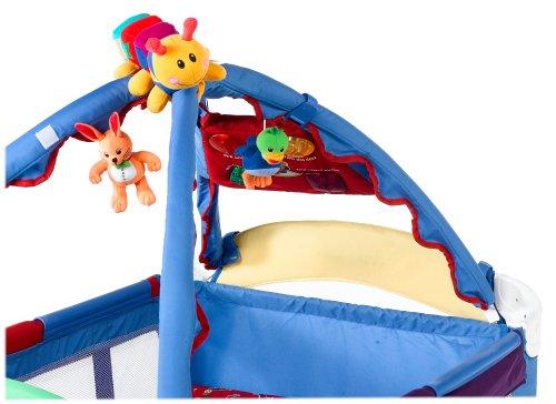 The Baby Einstein® Pack 'n Play® portable playard by Graco® grows with your baby. You can use it in three configurations: play mat, bassinet with toy gym, or playard with activity panel. It is sure to engage and entertain with color, texture and music. The toy gym attaches to the mattress pad, creating a wonderful play mat for use on the floor. Baby Bach and Baby Vivaldi hang happily overhead while Caterpillar hugs the toy gym. Caterpillar slides off the toy gym and introduces baby to the fascinating world of shapes and textures. The fun, electronic activity panel plays 4 Baby Einstein® melodies, engaging baby with the joy of music, dancing lights and the concept of numbers. The toy gym also attaches securely to the top of the Pack 'n Play® for use when baby is in the bassinet. Once baby has outgrown the bassinet, the activity panel hangs from the top rail of the Pack 'n Play® to entertain and engage your little one in the playard configuration. The Baby Einstein® Pack 'n Play® portable playard by Graco® will visually stimulate and audibly entertain as it grows with your baby, plus Caterpillar is sure to become a fun friend for years to come. Graco offers a wide variety of Play Yards