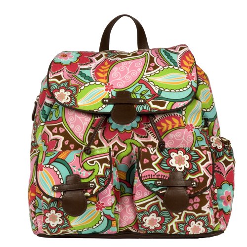 The Pink Floral Backpack with chocolate leather trim makes a bold statement and is teamed with warm rich chocolate, making a striking combination.